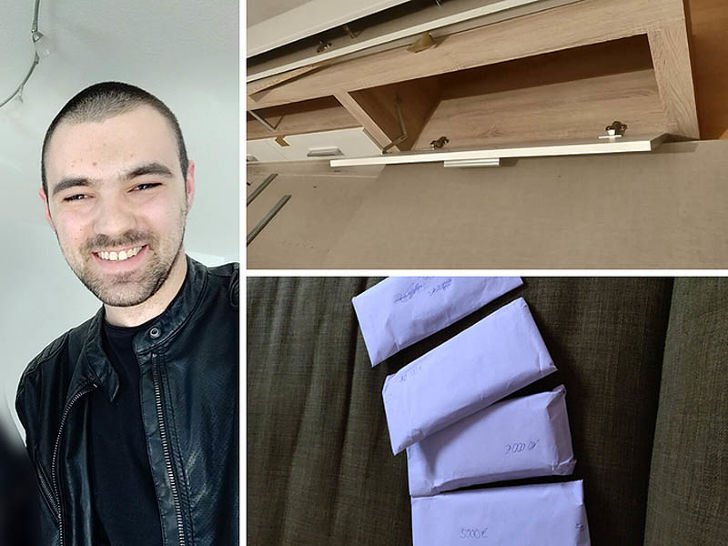 Petar Gavran (22) je mladić rodom iz okolice Slavonskog Broda, ali već godinu dana radi u Njemačkoj. Polovnu komodu je kupio preko Internet oglasnika za novi stan u jednom njemačkom gradiću, a omotnice krcate eurima nisu zezancija nego stvarnost kojom je mladić pokazao poštenje – vratio je novac potpunim strancima.