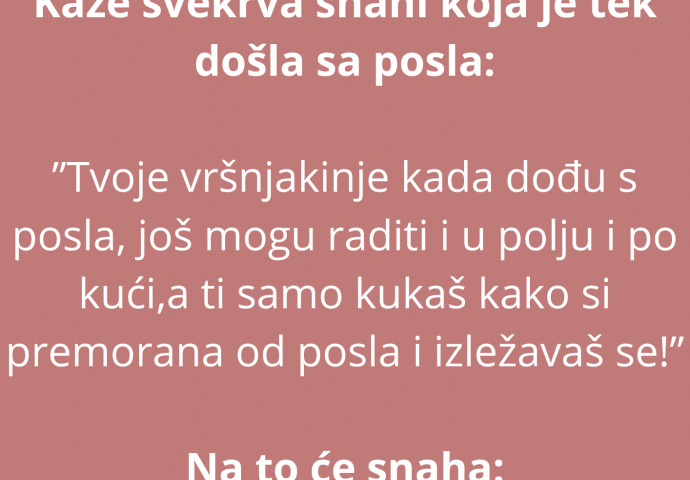 ”Tvoje vršnjakinje kada dođu s posla, još mogu raditi i u polju i po kući,a ti samo kukaš kako si premorana od posla i izležavaš se!”