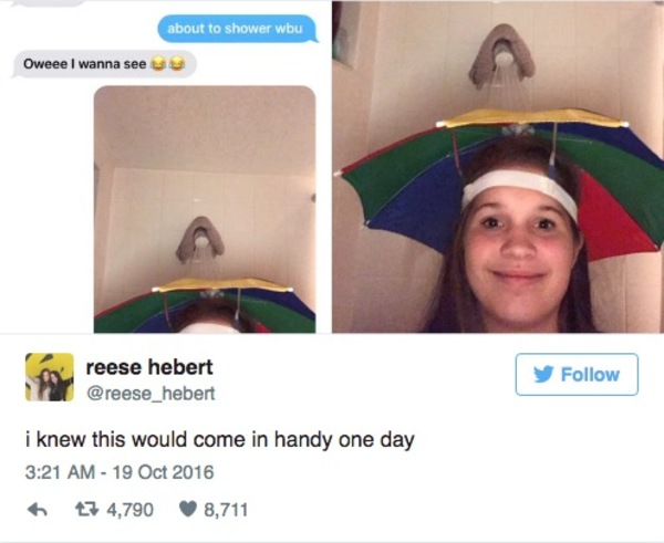 Naime, ona je iskoristila šešir u obliku kišobrana za kojeg je mislima da ga nikada neće imati priliku iskoristiti.
