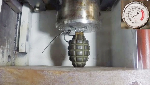 Ipak, popularna ekipa sa Youtube kanala ‘PressTube’ odlučila je da se malo ‘poigra’ i otkrije šta će se dogoditi kada bombu zgnječe hidrauličnom presom.