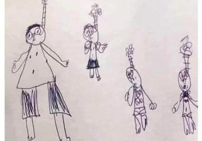 Sutradan odemo mi u školu i učitelj nam pokaza crtež pa reče: “Zamolio sam ga da nacrta svoju porodicu i on je nacrtao ovo. Možete li vi meni ovo objasniti?”