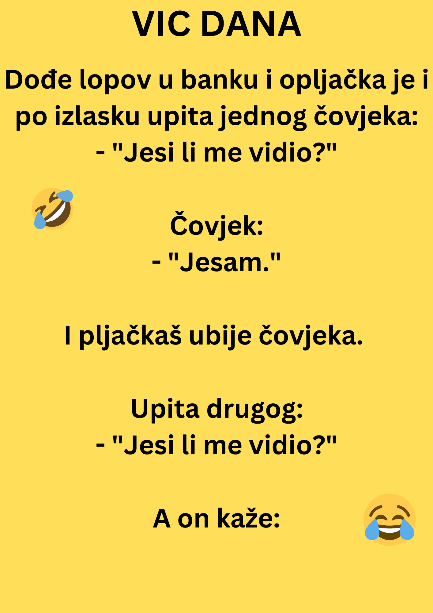 Dođe lopov u banku i opljačka je i po izlasku upita jednog čovjeka: