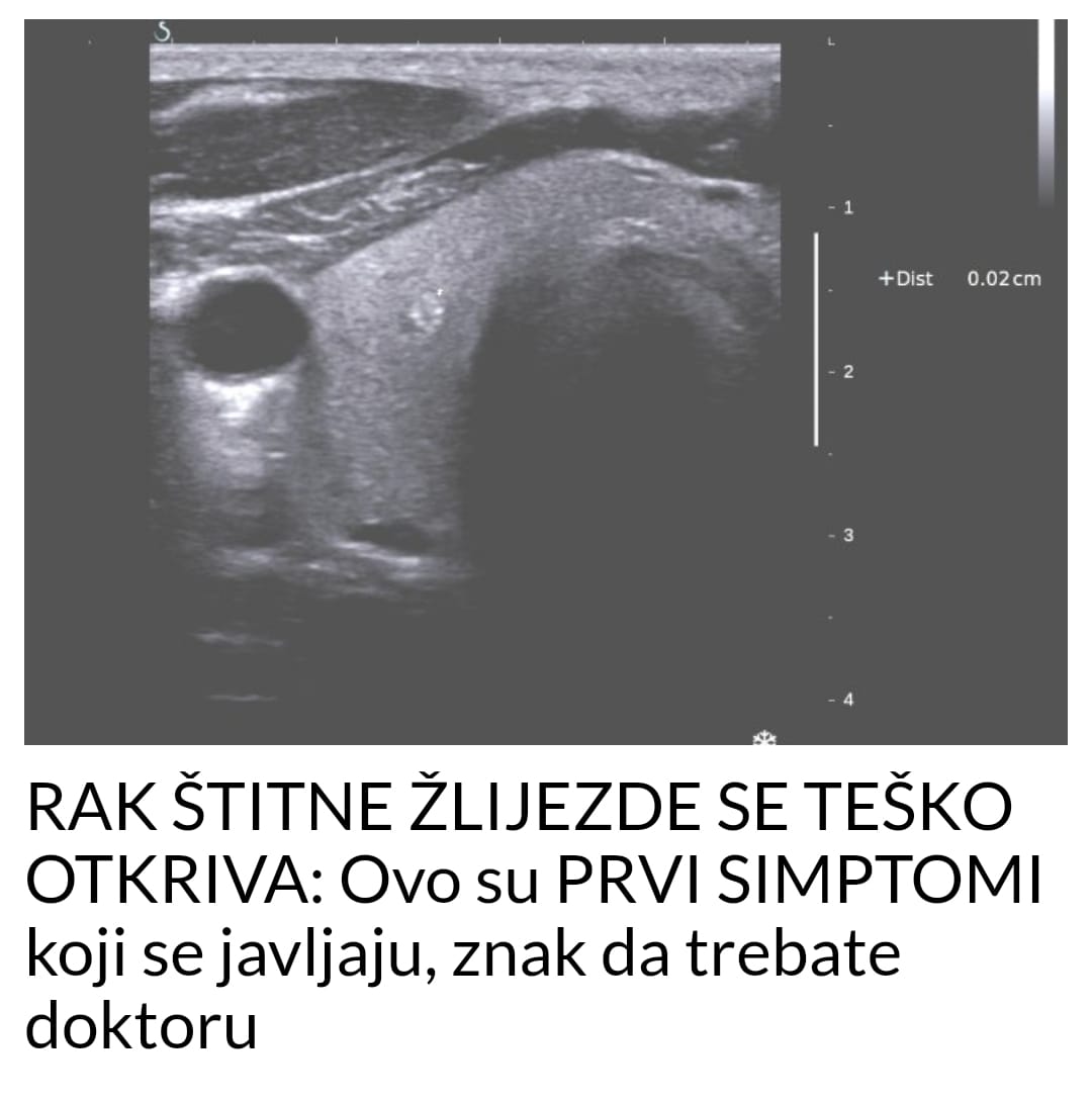 Karcinom štitne žlijezde je vrsta karcinoma koja se ne javlja često iako je posljednjih godina zabilježen porast stope njegove pojavnosti. Češće nastaje kod žena nego kod muškaraca (u omjeru 3:1), no može se javiti u svim dobnim skupinama, od djece do starijih osoba. U ranim fazama nastanka, karcinom štitnjače ne pokazuje osobite simptome, no njegovim se razvojem i širenjem počinju javljati znakovi upozorenja koji uključuju: 1. kvržice na vratu – mogu biti vidljive golim okom ili se samo osjetiti na dodir dok ih neke osobe mogu primijetiti pri gutanju kad će stvarati nelagodu (obično na prednjoj strani vrata),