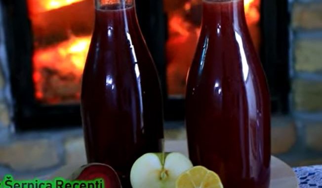 Zdrav sok bez kuvanja od cvekle, jabuke, šargarepe, limuna, meda i đimbira.