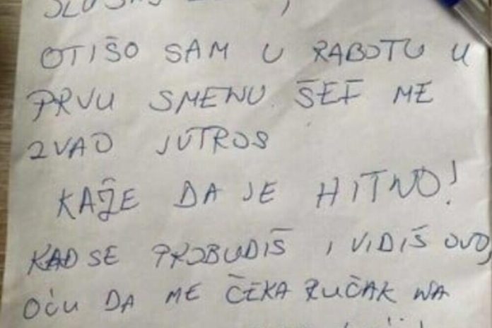 Na društvenim mrežama pojavila se poruka koju je suprug ostavio ženi nakon što je hitno morao na posao.