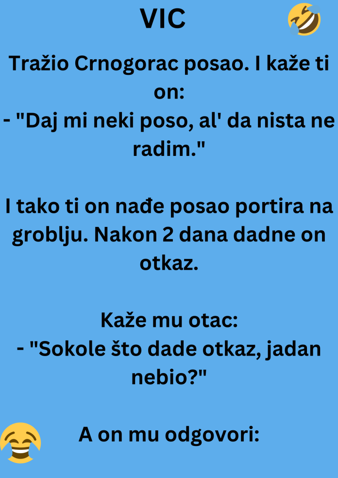 I tako ti on nađe poso portira na groblju. Nakon 2 dana dadne on otkaz.
