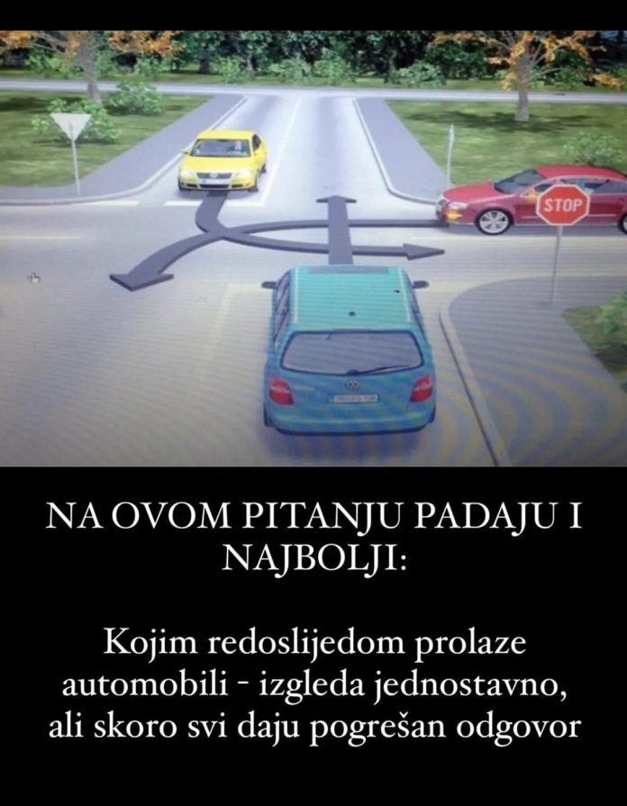 Odavno je poznato da su na testovima najteža pitanja ona sa “raskrsnicama“, tj slike gde prateći pravila i saobraćajne znakove, budući vozač treba da procijeni koje vozilo ima prednost, i upiše kojim redoslijedom vozila prolaze raskrsnicu.