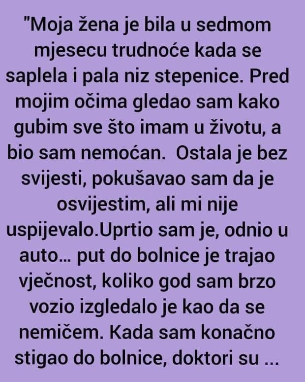 Moja žena je bila u sedmom mjesecu trudnoće kada se saplela i pala niz stepenice. Pred mojim očima gledao sam kako gubim sve što imam u životu, a bio sam nemoćan.