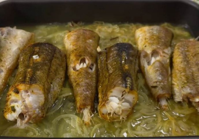 Najljepši i najlakši način da spremite ribu jeste da je ispečete na crnom luku.