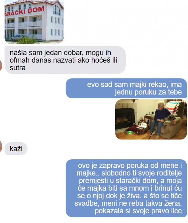 REKLA SAM BUDUĆEM MUŽU DA SMJESTI SVOJU MAJKU U STARAČKI DOM