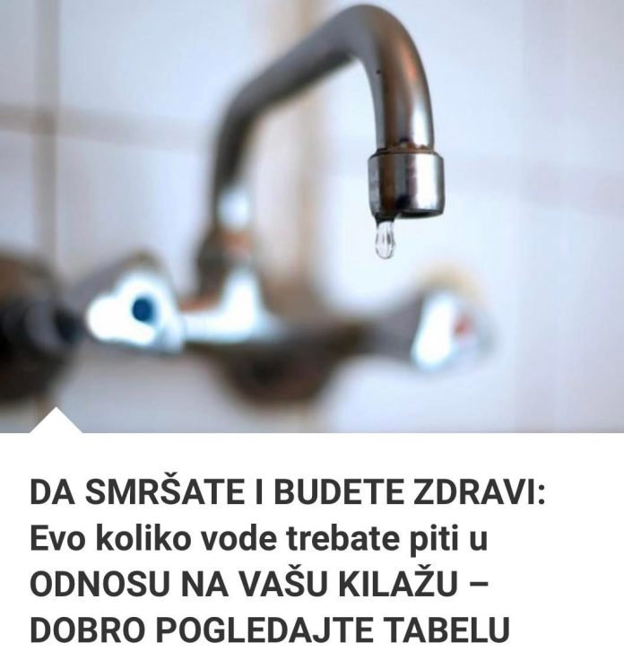 To zavisi od vaše tjelesne težine. A u nastavku pogledajte tabelu koja će vam pokaziti koliko vode trebate piti.