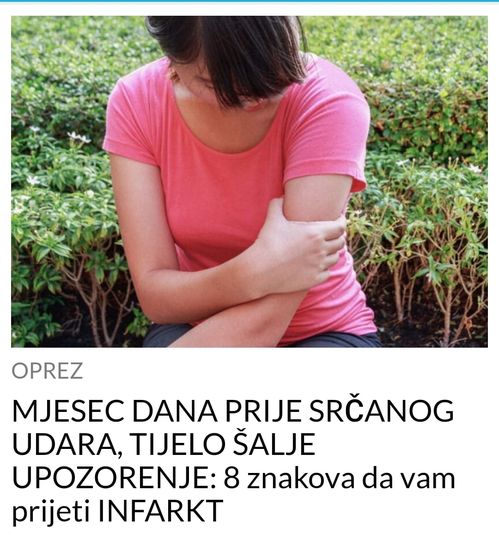 Donosimo simptome koji se mogu javiti i mjesec dana prije infarkta.