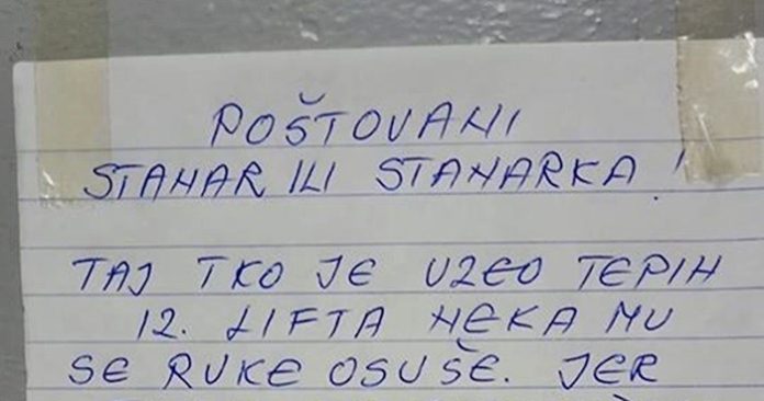 Međutim, čini se da se to nije svidjelo nekome od susjeda. Već nakon kratkog vremena netko ju je razočarao, a ona je odlučila ostaviti poruku ostalim stanarima.