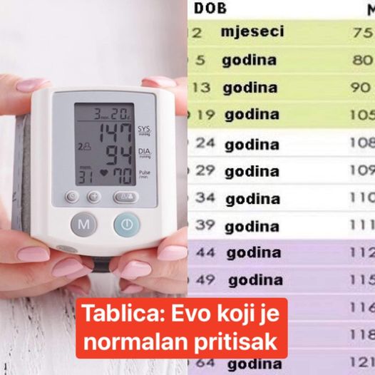 Ipak, to ne mora biti tako, jer vrijednost krvnog pritiska je drugačija prema uzrastu. Tako da bi bilo dobro da pogledate ovu tabelu i biće vam mnogo jasnije.