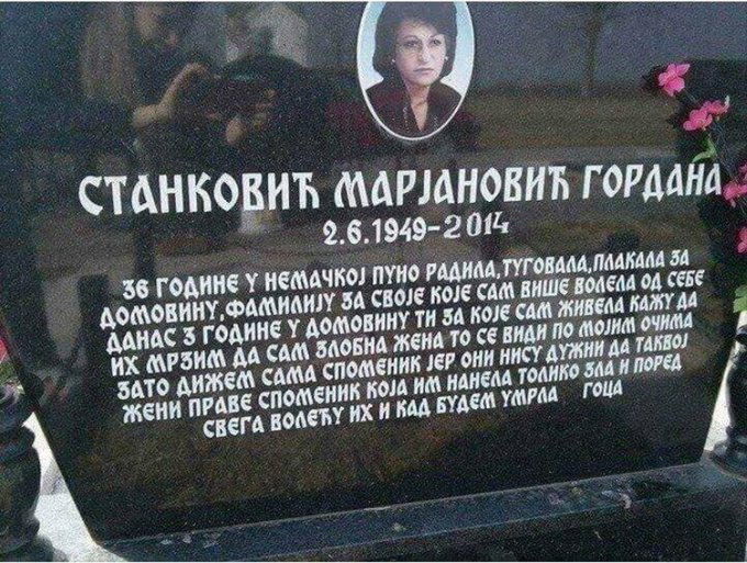 Ako ne vjerujete, evo šta piše na spomeniku jedne Gordane Stanković: