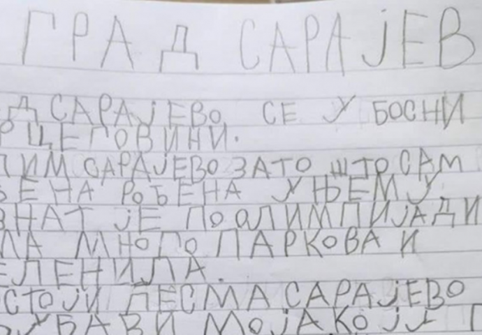 Djevojčica iz Beograda napisala sastav o Sarajevu koji je postao HIT na društvenim mrežama: GRAD SARAJEVO JE..