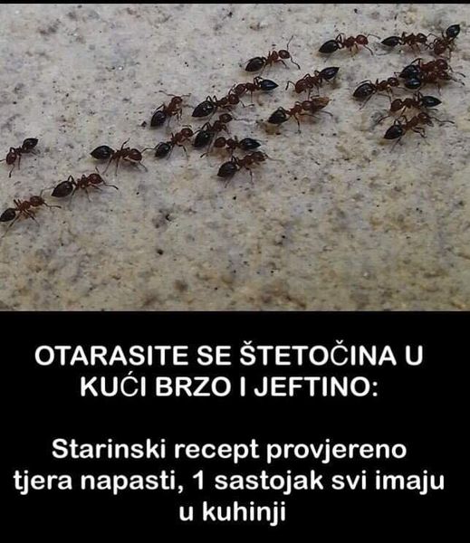 Prvo je potrebno da ustanovite odakle insekti dolaze, a zatim napravite rastvor amonijaka. Pomiješajte 10 ml aminijaka sa 1 litrom vode (najbolje da to uradite napolju ili na terasi), sipajte u bočicu sa raspršivačem i prskajte mjesto odakle mravi dolaze. Nakon nedelju dana ponovite još jednom, to bi trebalo da ih konačno otjera.