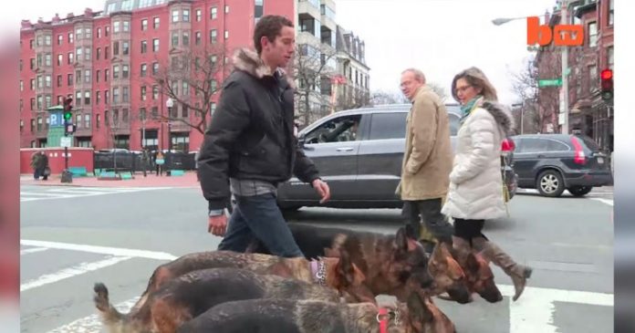 Naime, u videu je prikazana njegova tipična šetnja Bostonom i to sa šest pasa. Hannah, Jenna, Harmony, Griffin, Priscille i Savanah su najprije bili vezani povodcem, no poslije se dešava iznenađujući preokret.