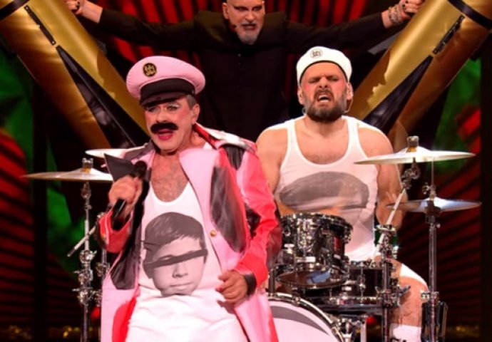 ČLANOVI Leta 3 su se tokom nastupa u prvoj polufinalnoj večeri Eurosonga skinuli u bijele potkošulje s crno-bijelim fotografijama djece prekrivenih očiju.
