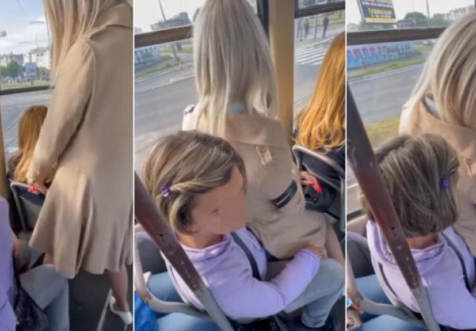 Starija gospođa moli djevojku koja sjedi na njoj da se ustane, ali ona ne odustaje.