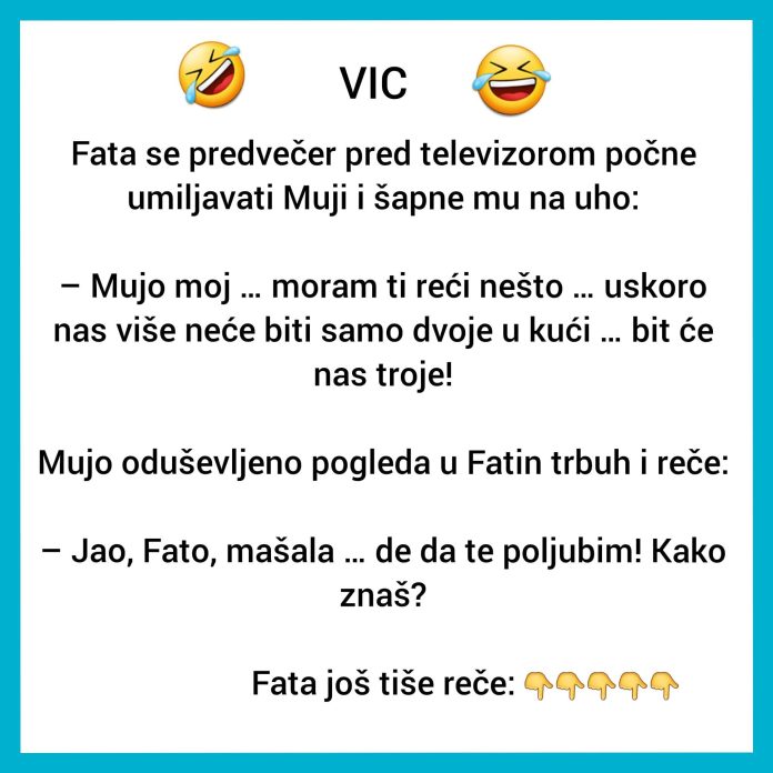 Mujo oduševljeno pogleda u Fatin trbuh i reče: