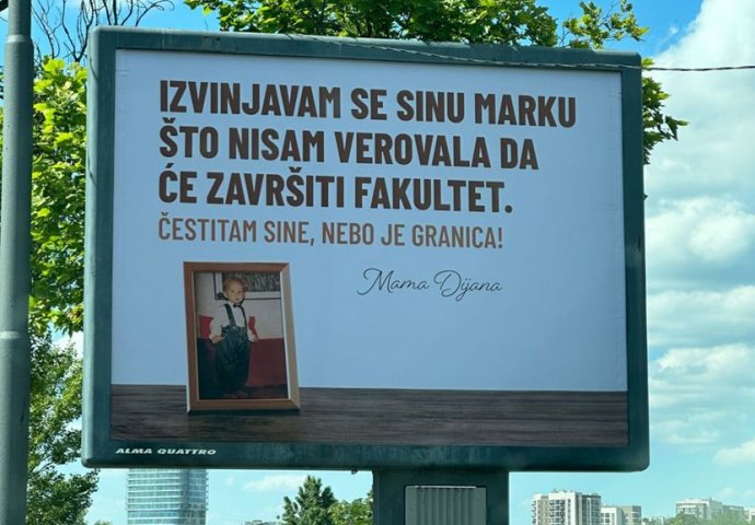 – Izvinjavam se sinu Marku što nisam vjerovala da će završiti fakultet. Čestitam sine, nebo je granica. Mama Dijana – glasi poruka.