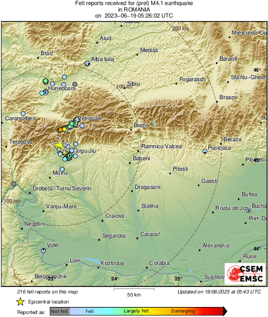 Epicentar zemljotresa bio je kod grada Targu Žiju u Rumuniji koji je udaljen 100 kilometara od Kladova.