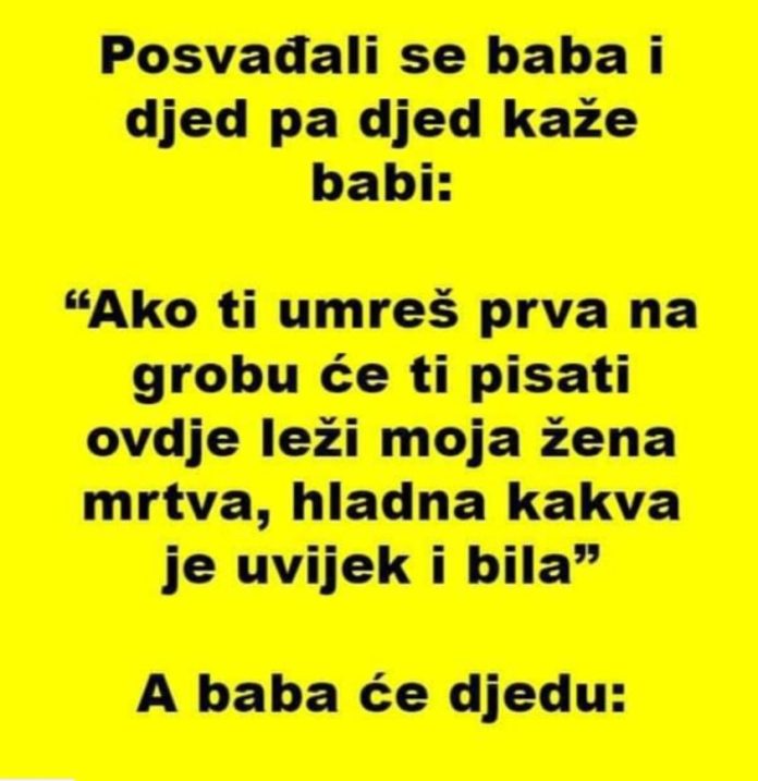 Posvađali se baba i djed pa djed kaže babi: