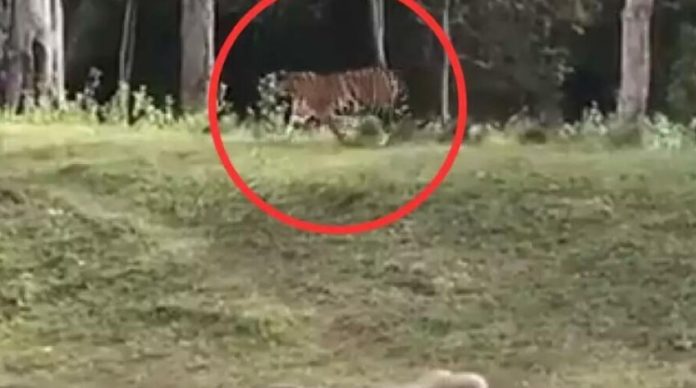 Kada se ogromna mačka previše približila, slon je istrčao i pojurio ga, a tigar je uspeo na vreme da umakne.