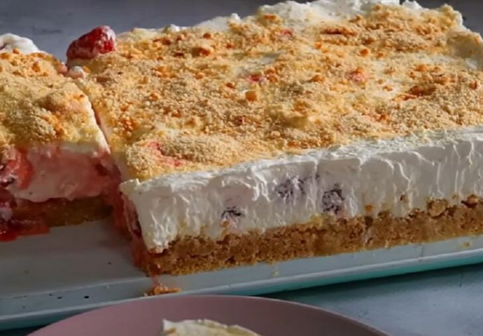 Najsočniji voćni kolač od jagoda i plazme, pravi se bez kuhanja i pečenja: