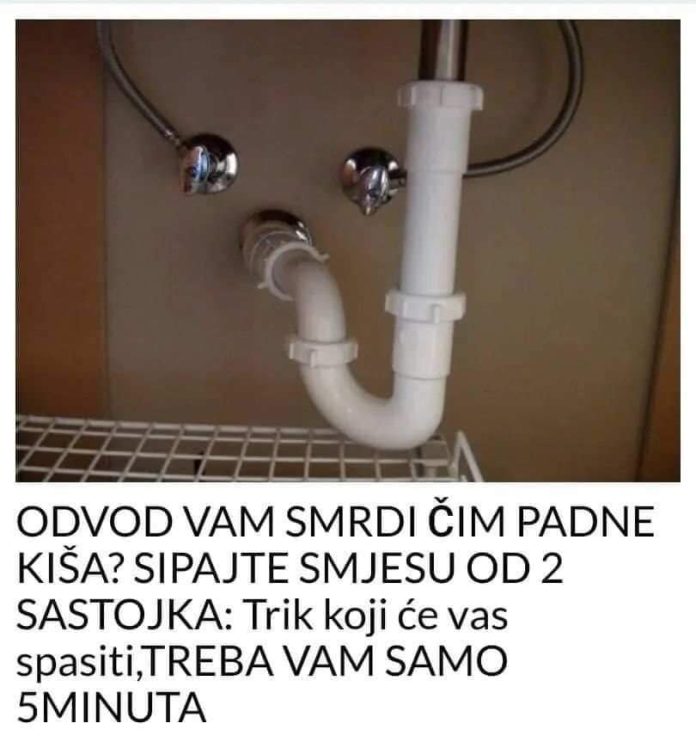 Prvo provjerite da li se unutra nalazi nešto, što je možda zapušilo ovaj odvod i što uzrokuje smrad. Ukoliko to nije slučaj, a obično nije, sve što je potrebno je da u kroz rešetku sipate malo specijalne tečnosti u ovaj odvod. Recept za tečnost slijedi u nastavku.