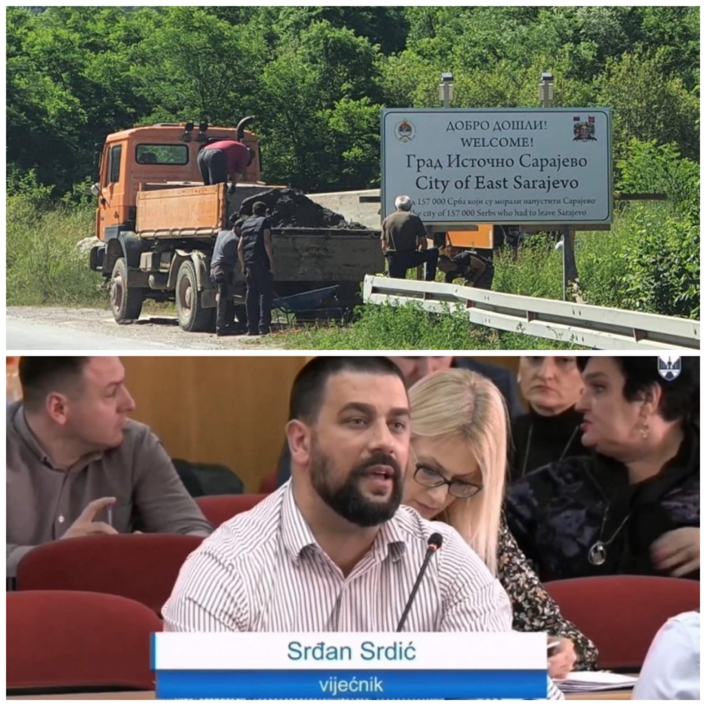 Vijećnik u općini Novo Sarajevo Srđan Srdić reagirao je nakon što je na ulazu u Istočno Sarajevo, na granici entiteta RS i Federacije Bosne i Hercegovine, postavljena tabla na kojoj piše “Grad Istočno Sarajevo – grad 157.000 Srba koji su morali napustiti Sarajevo”.