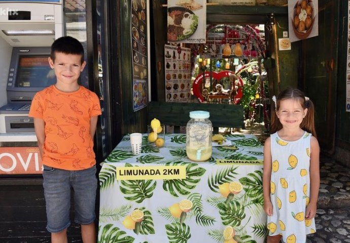 Nekoliko mališana posljednjih dana privlači pažnju prolaznika na Baščaršiji, a na stolu postavljenom ispred ulaza u restoran “Kolobara” prodavali su limunadu dok je novac koji su zaradili namijenjen za humanitarne svrhe.