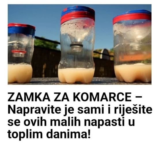 Broj komaraca u svom domu možete lako da smanjite uz pomoć plastične flaše, koja će privući komarce i ubiti ih. Smesa koja se stavlja u presečenu plastičnu bocu može da traje oko dve nedelje, a zatim se flaša baca. Kako biste dobili veću efikasnost, preporuka je da postavite više ovakvih zamki u stanu, oko kuće ili u dvorištu.