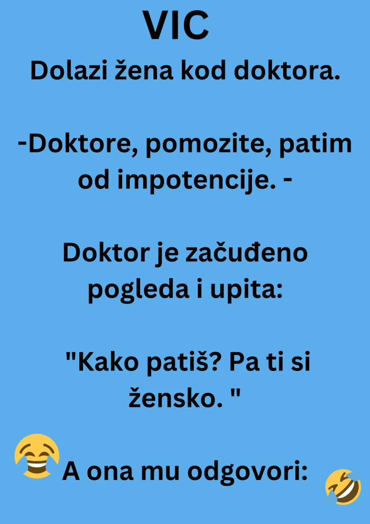 Doktor je začuđeno pogleda i upita: “Kako patiš? Pa ti si žensko. ”