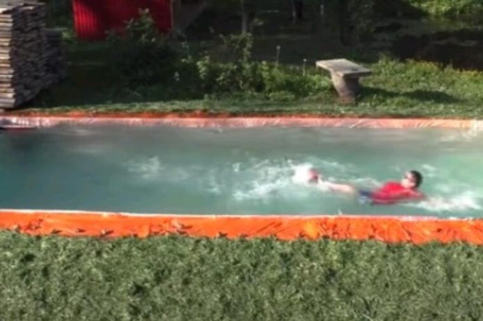 Naime, on je iskoristio daske i najlon i napravio bazen dužine 8 metara, širine 3 metra i dubine 1,20.