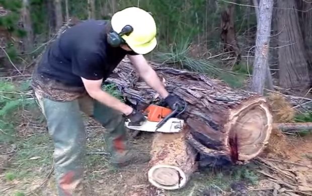 Međutim, na Internetu se pojavio jedan potpuno bizaran video klip, a koji prikazuje čovjeka koji motornom testerom sječe drvo.