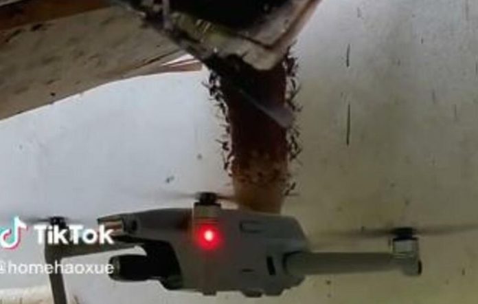 Dron je svojim propelerom razneo ovo gnezdo, ali stršljena se nije otarasio.