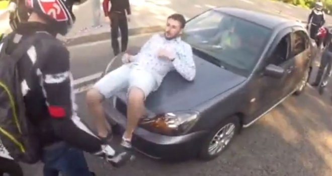 Ovaj momak se vozio sa svojom djevojkom kada je skupina motociklista opkolila njegov auto i onda je došlo do fizičkog obračuna.
