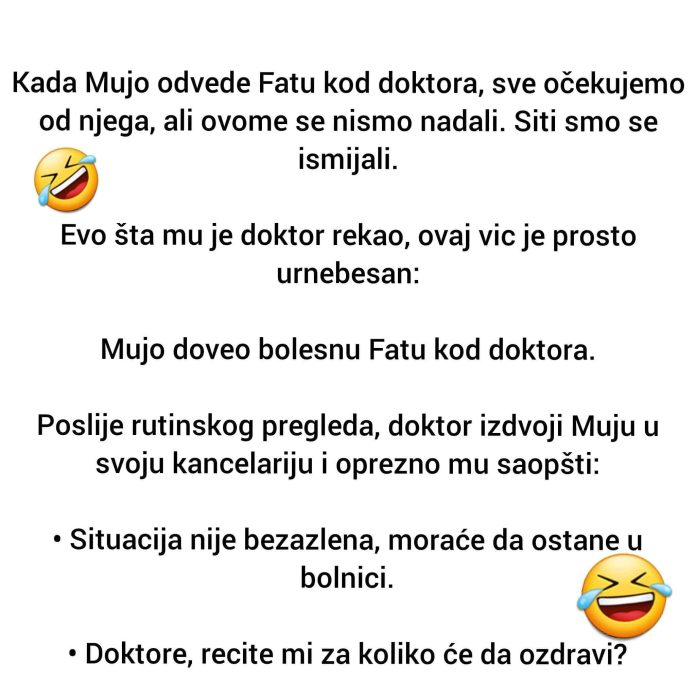 Poslije rutinskog pregleda, doktor izdvoji Muju u svoju kancelariju i oprezno mu saopšti:
