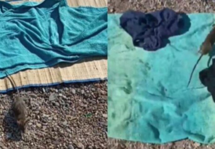 Na jednoj crnogorskoj plaži odmor domaćih kupača poremetio je – štakor. Na snimci koju je na društvenoj mreži Instagram objavio korisnički račun Podgorički vremeplov, štakor trči po plaži, jastucima i ručnicima.