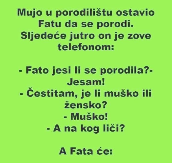 Mujo u porodilištu ostavio Fatu da se porodi. Sljedeće jutro on je zove telefonom: