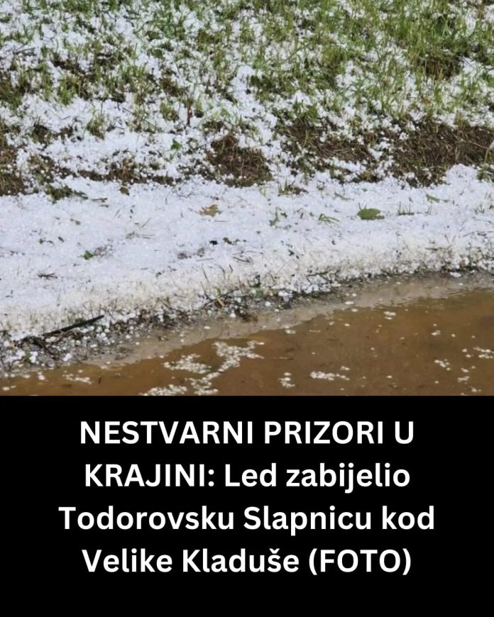 Todorovska Slapnica kod Velike Kladuše prekrivena je ledom danas, 7. augusta u poslijepodnevnim satima.