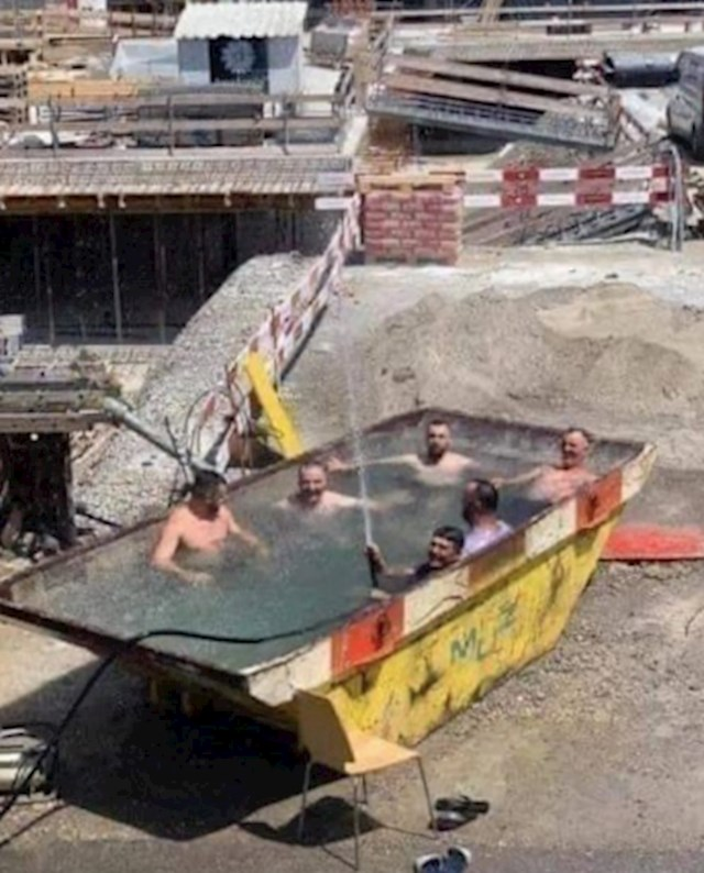 Zašto bi ovi građevinski radnici plaćali skupe wellness vikende ili odlazak na more, kad se i na radnom mjestu mogu itekako dobro zabaviti i rashladiti?!