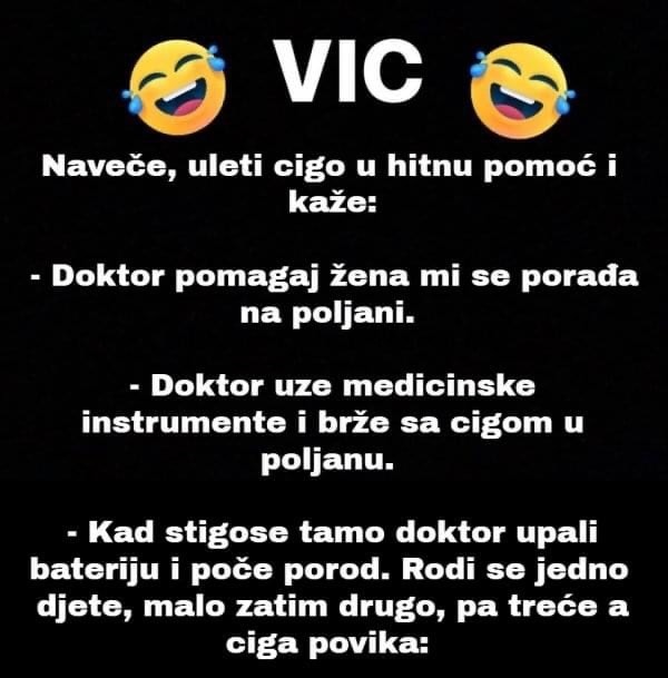 – Kad stigose tamo doktor upali bateriju i poče porod. Rodi se jedno djete, malo zatim drugo, pa treće a ciga povika: