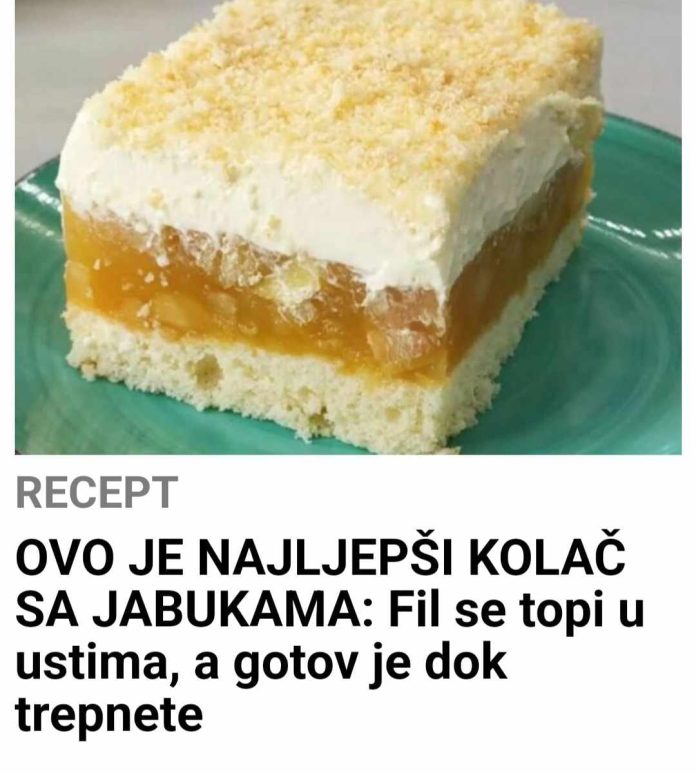 Vrlo je jednostavan za pravljenje, a ako volite voćne kolače, naš prijedlog je da probate i ovaj recept. Preko mekane kore ide najljepši fil sa jabukama i pudingom od vanile, a onda kao šlag na tortu i čizkejk fil. Garantovano ćete zavoljeti ovaj kolač sa jabukama na prvi zalogaj.