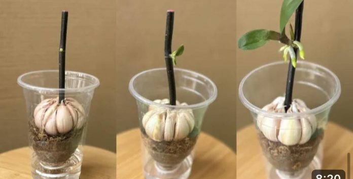 Uzgajanje grana orhideje u vodi sa bijelim lukom, začudo, pupolje i cvjeta zauvijek!