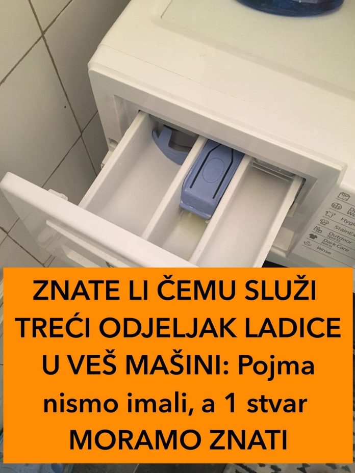 Veš mašine uglavnom imaju tri odjeljka u ladici, ali ipak većina ljudi ne zna čemu služi treći. Trebalo bi napomenuti da prije upotrebe veš mašine detaljno pročitate uputstva za njenu upotrebu kako ne biste pokvarili mehanizam. Svaki odjeljak u veš mašini ima svoju svrhu, a mnogi ne znaju čemu služi treća pregrada, piše B92.