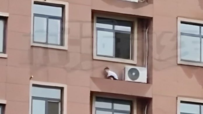 Tačnije, dijete je čučnulo pokraj klima-uređaja na izbočini ispod prozora svog stana. Nešto kasnije odrasla osoba se pojavljuje na prozoru i naređuje dječaku da uđe u stan.