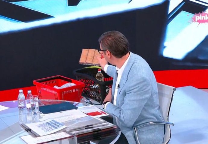Govoreći o akciji “Bolja cijena” predsjednik Srbije Aleksandar Vučić je donio korpu s nekim od osnovnih proizvoda